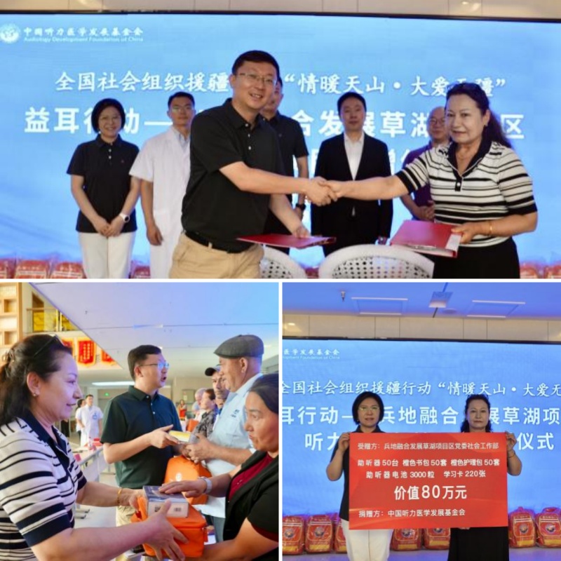 活动首期向兵地融合发展草湖项目区党委社会工作部捐赠了价值80万元的助听器及爱心物资(含50台助听器、50套橙色护理包、3000粒助听器电池、220张学习卡等)。