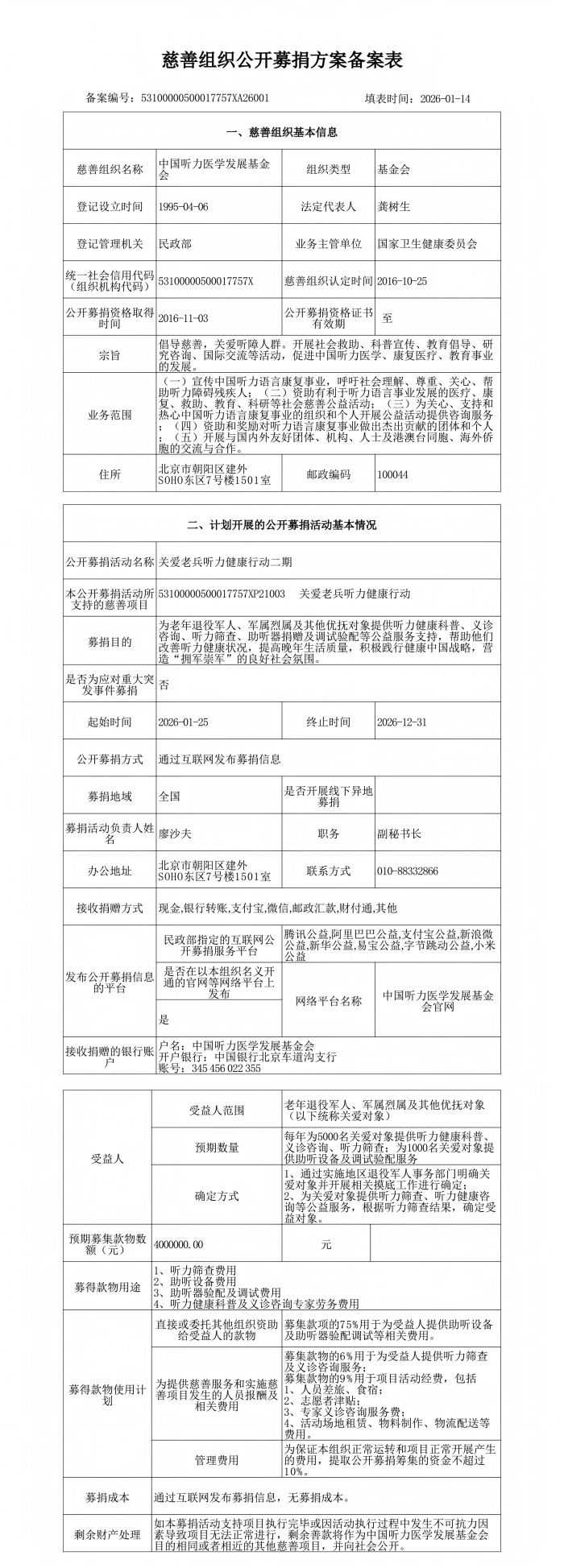 | 听力筛查及义诊咨询服务 | 助听设备资助 | 助听器验配及调试费用 |
