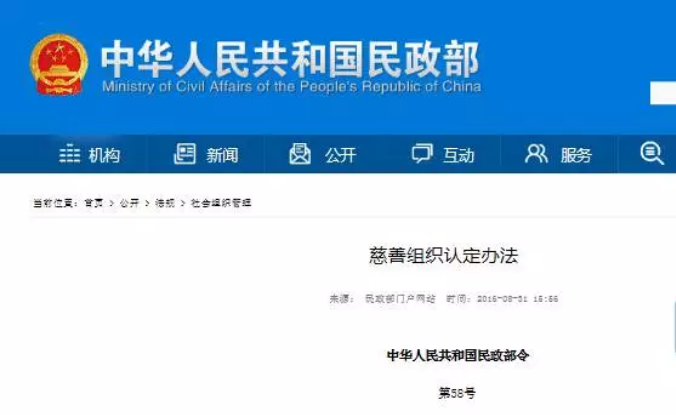 《慈善组织认定办法》已经2016年8月29日民政部部务会议通过,现予以公布,自2016年9月1日起施行。