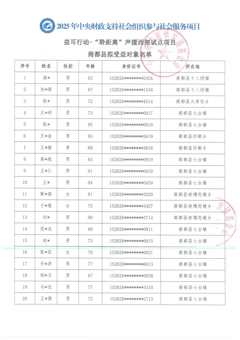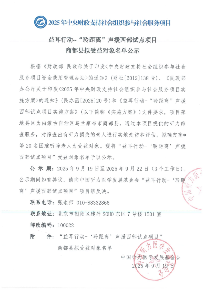 益耳行动--”聆距离“声援西部试点项目商都县拟受益对象名单公示