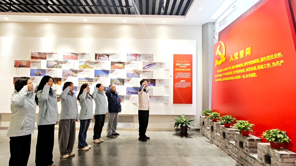 参观接近尾声时,活动迎来了庄重而神圣的环节。在庄严肃穆的党员宣誓墙前,党支部书记公泽忠带领全体党员整齐列队,举起右拳,以铿锵有力的声音重温入党誓词。“我志愿加入中国共产党,拥护党的纲领,遵守党的章程……” 誓言回荡在场馆内,既是对党员初心使命的再次叩问与坚守,更将全体党员的思想与行动凝聚在一起,激发起大家以实际行动践行誓言、立足听力医学公益领域,为推动中国听力医学公益事业高质量发展贡献力量的坚定决心。