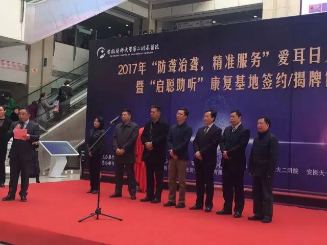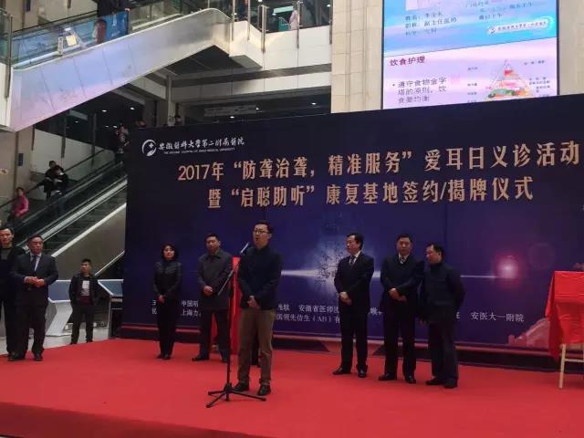 3月1日上午,“防聋治聋,精准服务”爱耳日义诊活动暨“启聪助听”康复基地签约揭牌仪式在安徽医科大学第二附属医院召开。