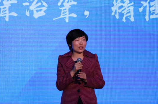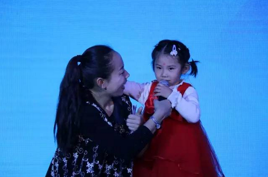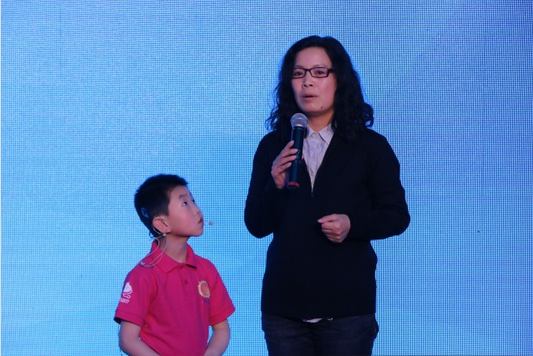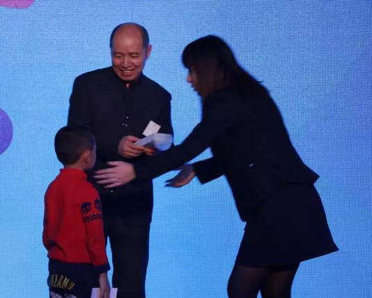 国家项目受益者小馨毓的母亲作为代表上台发表感言,她十分感谢此次项目给小馨毓带来的改变。