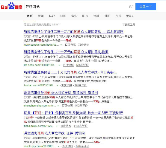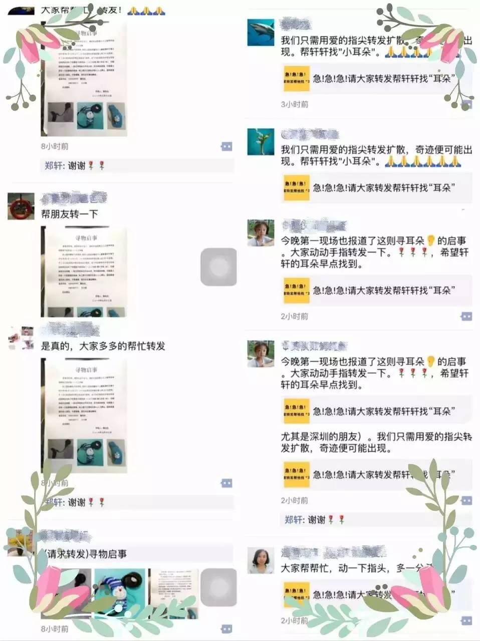 经过消息推送,小轩轩的“寻耳”信息在网络上引发了一场“爱的蝴蝶效应”,爱心网友纷纷转发,为小轩轩“寻耳”。