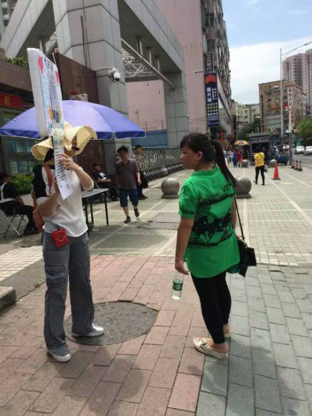 轩轩的爸爸、妈妈、老师、爱心人士走上街头,向过路的人群散发“寻耳”信息。