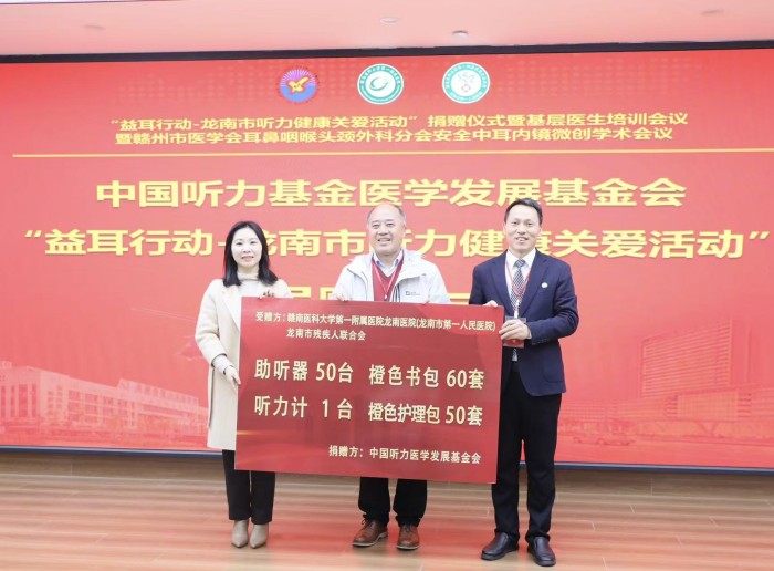 31日,“益耳行动-龙南市听力健康关爱活动”捐赠仪式暨基层医生培训在赣南医科大学第一附属医院龙南医院(龙南市第一人民医院)成功举办。本次活动通过听力健康科普宣传,帮助当地群众提高爱耳护耳意识,增强残疾预防能力,降低耳疾病及听力残疾发生率;通过听力筛查及义诊服务,帮助他们早发现、早诊断、早干预;通过基层医生培训及听力计捐赠,助力基层学科建设,助力专业人才培养,进一步带动基层耳科及听力诊疗能力的提升,推动我国听力健康工作更好发展。 本次行动得到了支付宝公益爱心网友的支持。
