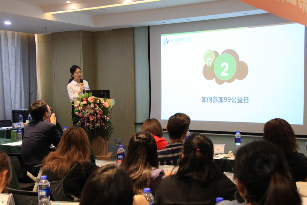 爱乐融聆听计划负责人张彬彬向参训老师们介绍了爱乐融聆听计划的基本情况和99公益日的激励计划。