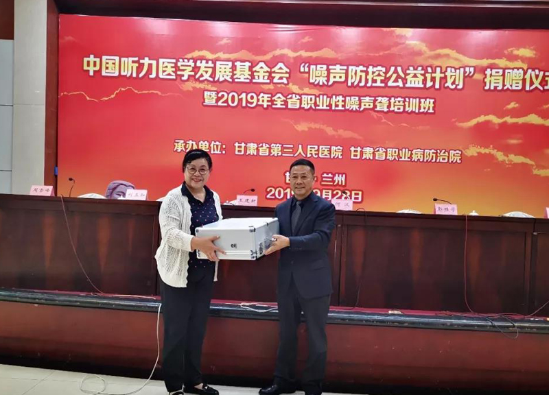 王建新主任委员代表我会向甘肃省第三人民医院捐赠价值15万元德国麦科全功能型声阻抗仪一台。
