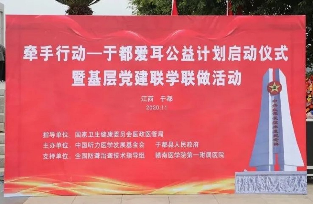 心怀对长征精神的学习传承之意,对于都人民的崇敬关爱之情,为帮助更多革命老区的听障者早日回归有声世界,在国家卫生健康委员会医政医管局的指导下,11月20日,我会和于都县人民政府共同发起的“牵手行动-于都爱耳公益计划启动仪式暨基层党建联学联做活动”在江西于都县成功举办。