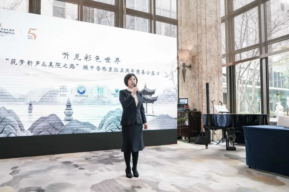 甄丽霞副秘书长在致辞中介绍了“筑梦新声”公益项目成立以来所取得的成绩,对“杭州城中香格里拉人”的爱心和担当,对大家为听障人群、为听力健康所作出的努力和贡献表示由衷的感谢,并倡议在座的所有人都能成为关爱听障人群的传播者,支持者。