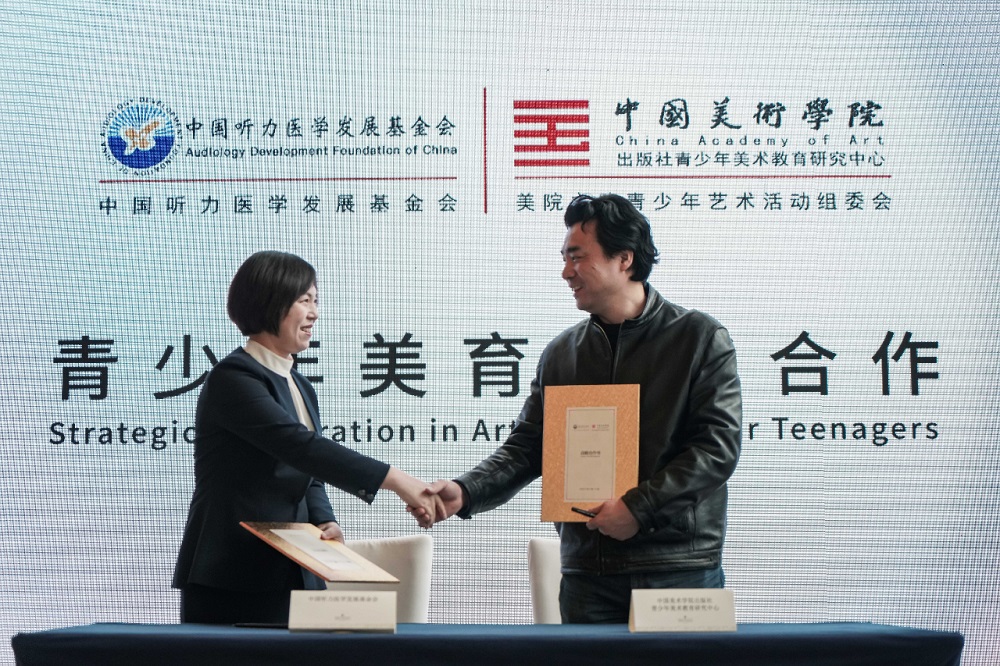 为关注听障儿童艺术才能的发掘和培养,提高听障人群的艺术修养,推动听障儿童美育多维度发展,为其提供艺术才能发展的广阔平台,我会同中国美术学院出版社青少年美术教育研究中心签署战略合作协议,并在杭州市余杭区阳光语训中心成立首家“美院之路·听障儿童艺术实验工坊”。