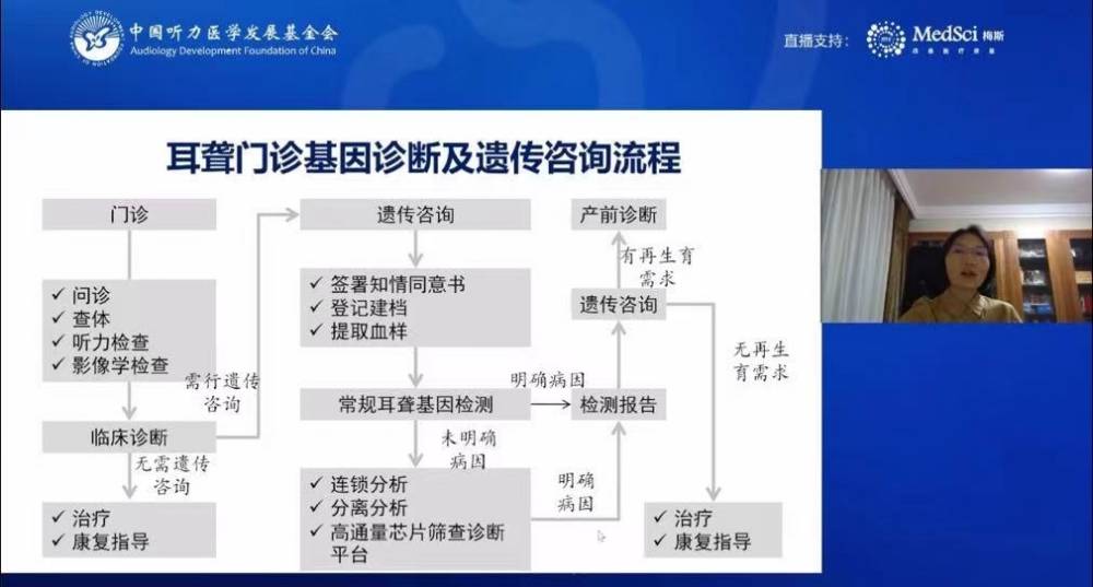 我会耳聋基因诊断与防控专家委员会主任委员、解放军总医院(301医院)耳鼻咽喉头颈外科主任医师、博士生导师袁永一教授直播授课画面