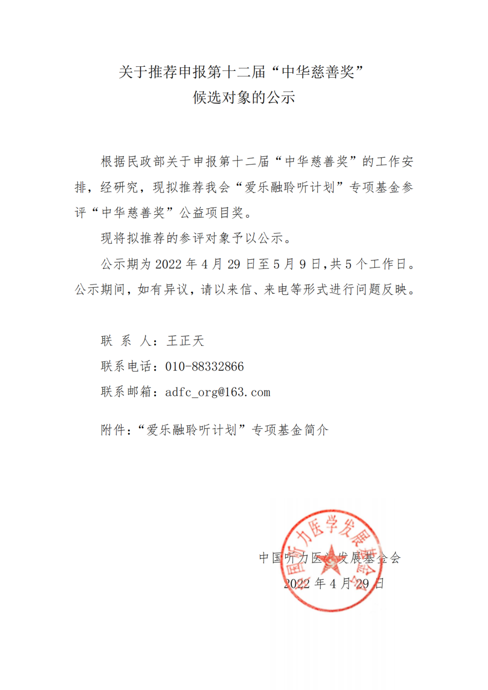 关于推荐申报第十二届“中华慈善奖”候选对象的公示