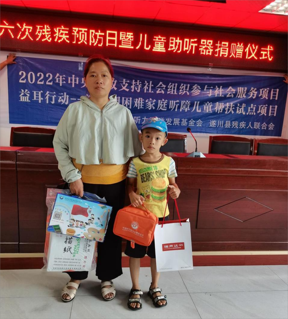2022-08-26来源:听基会普及残疾预防知识,建设健康中国 。8月25日是第六个“全国残疾预防日”,由我会承接的2022年中央财政支持社会组织参与社会服务项目益耳行动-新赣湘困难家庭听障儿童帮扶试点项目捐赠仪式在遂川县残疾人联合会成功举办。遂川县残疾人联合会刘冬古理事长、县媒体以及听障儿童与其家长、志愿者等工作人员参加了本次活动。捐赠活动由遂川县残疾人联合会邱启星主任主持。