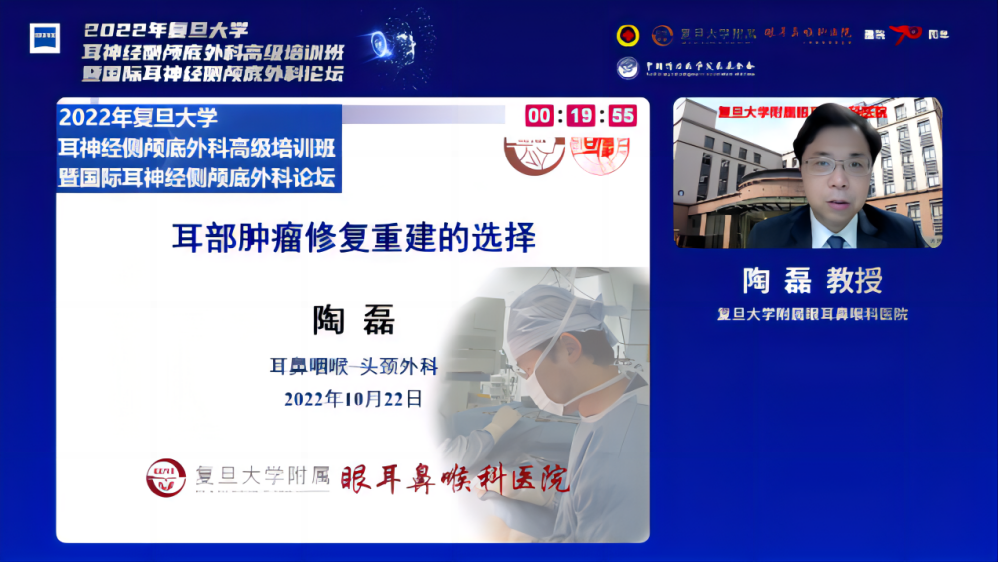 复旦大学附属眼耳鼻喉科医院的陶磊教授就“耳部肿瘤缺损的修复重建”,通过不同病例分享了不同重建方式的选择原则,提供了自己的宝贵经验。