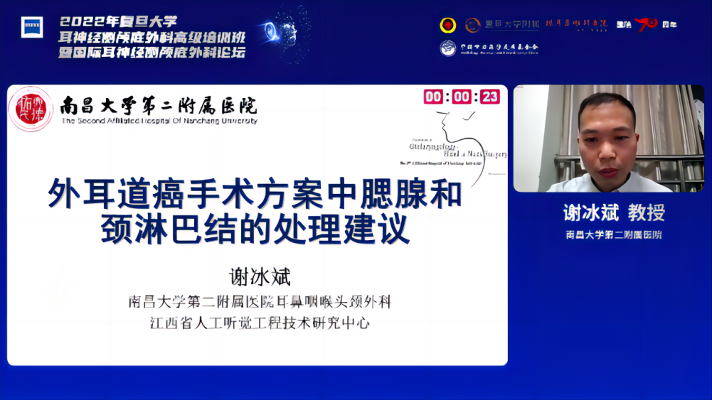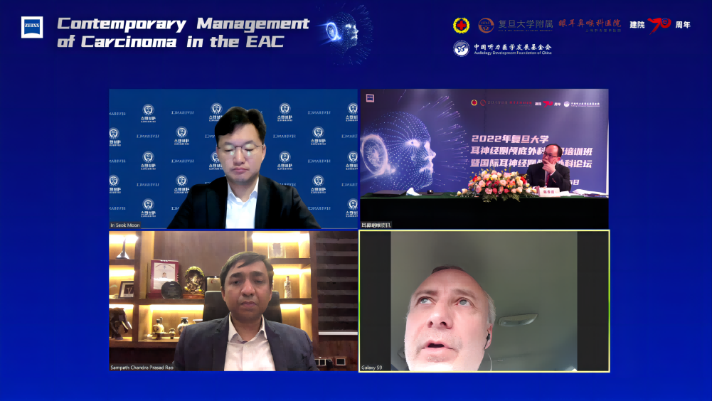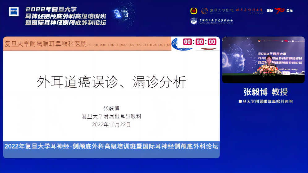 2022复旦大学耳神经侧颅底外科高级解剖培训班暨耳神经侧颅底外科论坛于10月22日-26日进行为期5天的培训与交流。本次论坛汇聚了国内外的耳科及侧颅底领域的顶级专家,以线上和线下相结合的方式,与全国耳鼻喉科同道共同探讨耳神经侧颅底外科疾病的诊治策略和手术技巧,取得了丰硕的成果。我会通过本次论坛,与复旦大学眼耳鼻喉科医院开展了国内首个对《外耳道癌规范化诊断和治疗中国共识》(以下简称《共识》)进行全面解读的专家分论坛。《共识》论坛得到了中华耳鼻咽喉头颈外科杂志社的鼎力支持。