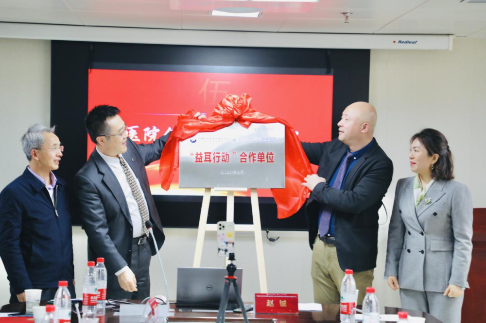 基金会执行副秘书长甄丽霞、郗昕教授、赵宇教授、黄治物教授等为“益耳行动合作单位”揭牌,双方开启听力健康领域深度合作。