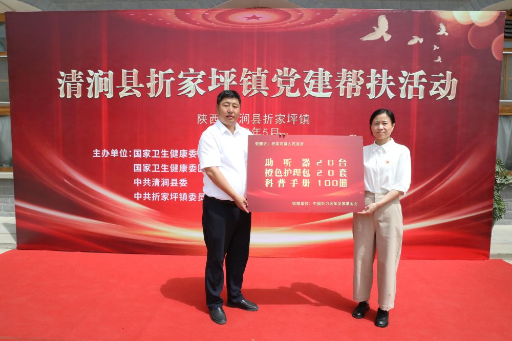 座谈会后,举办了“益耳行动—清涧县折家坪镇关爱听力健康公益活动”捐赠仪式。