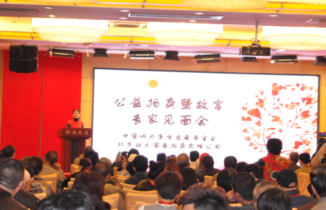 中国听力医学发展基金会副秘书长金霞代表基金会接受北京战元国泰拍卖有限公司的捐赠,并向战元国泰颁发捐赠证书