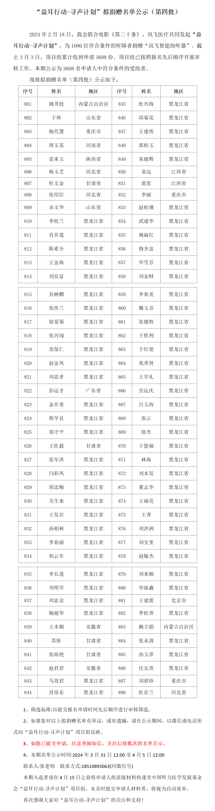 "益耳行动-寻声计划“拟捐赠名单公示(第四批)