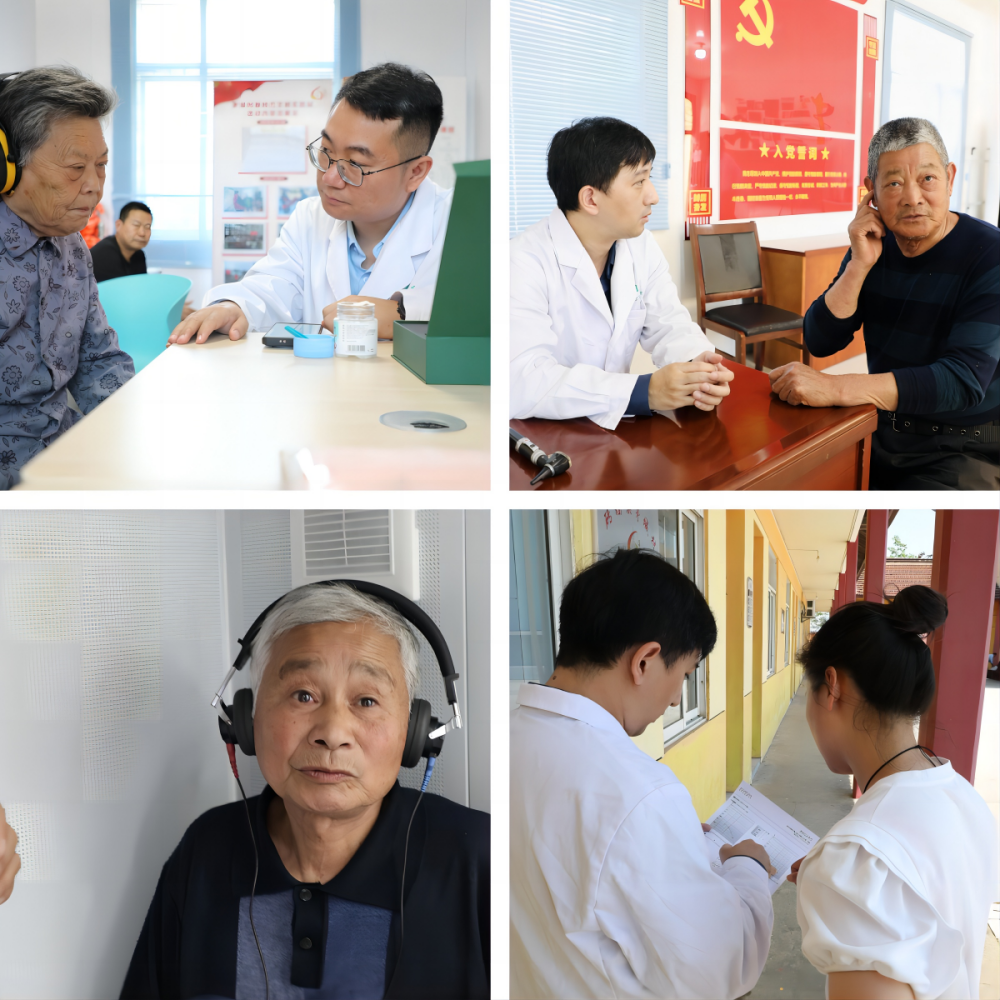 启动仪式后,全体参会人员随同“移动听力服务车”前往茅城戏楼广场开展义诊,向听障儿童赠送橙色书包和学习用品,为茅城村部分老年人提供了义诊及听力检测服务。