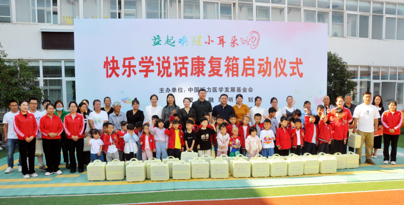 9月25日上午,由中国听力医学发展基金会“爱乐融聆听计划”专项基金发起的“快乐学说话康复箱”公益捐赠仪式在漯河市召陵区启聪特殊教育学校成功举办。仪式上, “爱乐融聆听计划”向召陵区启聪特殊教育学校捐赠了60个“快乐学说话康复箱”。