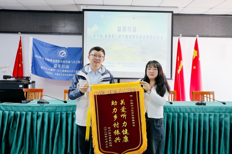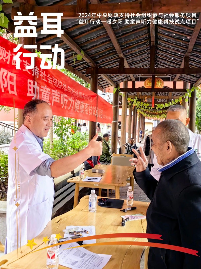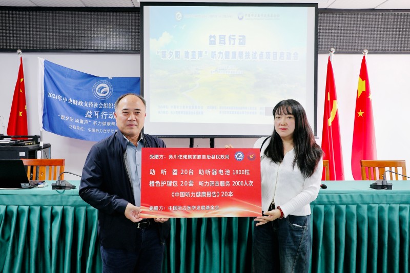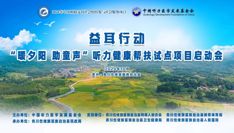 10月10日,由中国听力医学发展基金会承接的2024年中央财政支持社会组织参与社会服务项目“益耳行动-暖夕阳 助童声听力健康帮扶试点项目”启动会在贵州省务川仡佬族苗族自治县民政局成功举办。项目组专家深入乡镇、街道、学校、敬老院为务川自治县户籍的“一老一小”群体进行听力健康科普、义诊筛查及康复指导。