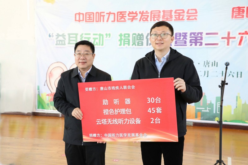 我会向唐山市捐赠助听器、助听设备护理包云塔无线听力设备等物资