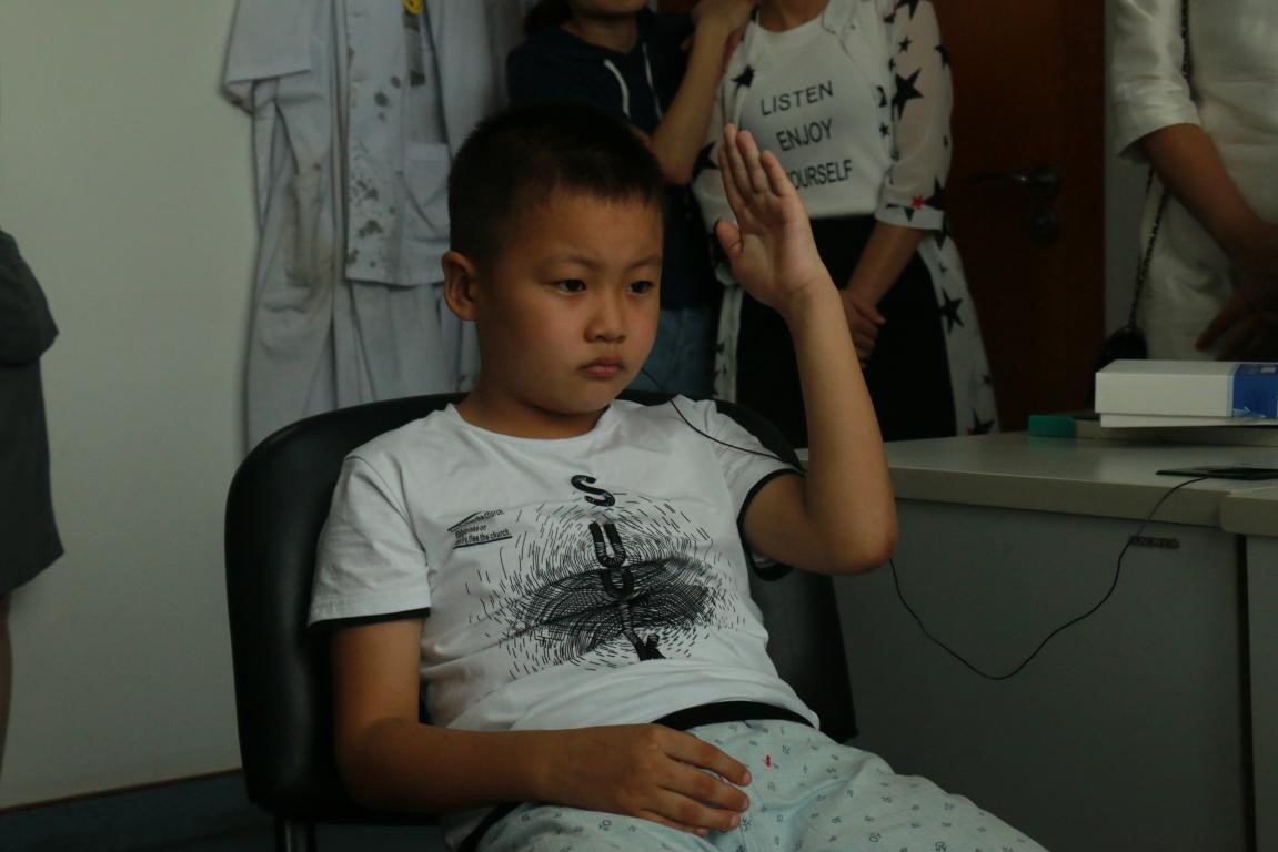 当工作人员给出第一个声音信号,黄子彦举起了左右,表示“我听见了”。黄子彦是一名语后聋患儿,因为曾经可以听到声音,在丢失声音后显得尤为不安。“妈妈,我耳朵什么时候才能好?”这是黄子彦经常会问妈妈的一句话。今天,“筑梦新声”给了他一个答案。