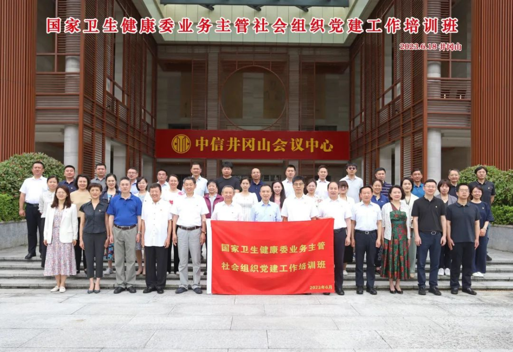 2023年6月17日至6月20日,由国家卫生健康委直属机关党委主办、国家卫生健康委业务主管社会组织党委承办的国家卫生健康委业务主管社会组织党建工作培训班在中信井冈山培训中心成功举办。委业务主管社会组织31个党支部负责人、党务干部参加了培训。