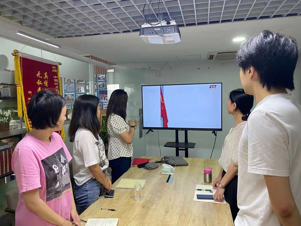 观看庆祝仪式过程中,大家共同体会着在黑暗中诞生,在苦难中成长、在挫折中奋起,在奋斗中不断壮大的中国共产党走过的100年艰辛历程,更加体会今天的幸福生活来之不易。升国旗时,全体人员肃穆起立,共同跟唱国歌,向国旗行注目礼。党支部积极分子李莹更是用手语认真跟唱,专注而虔诚的神态令人动容。收看结束后,基金会支部组织大家进行了专题讨论学习。大家纷纷表示,要更加紧密团结在以习近平同志为核心的党中央周围,增强“四个意识”、坚定“四个自信”、做到“两个维护”。勇于担当、攻坚克难,不断推进中国听力医学事业发展,更好服务好听障人群,为实现人民对美好生活的向往不懈努力,走好实现第二个百年奋斗目标新的赶考之路。