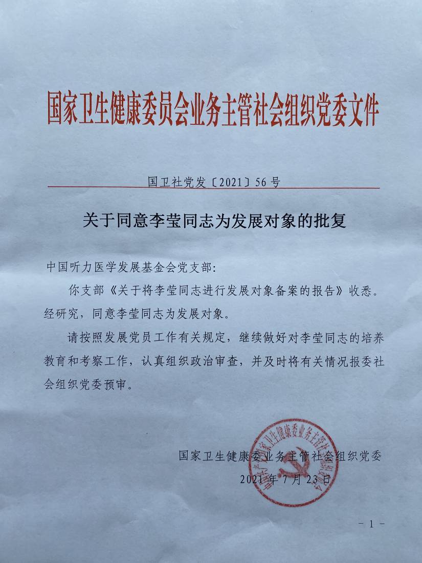 首先祝贺李莹光荣成为一名党员发展对象!李莹是2016年来到基金会工作的,她细致踏实,对每一项工作都能认真对待,对每一位同事都很有感情,充满正能量,很令人感动。同时对李莹同志提出期望,希望她以后进一步挖掘自己的潜力,为基金会、为听障人群做更多的事情。
